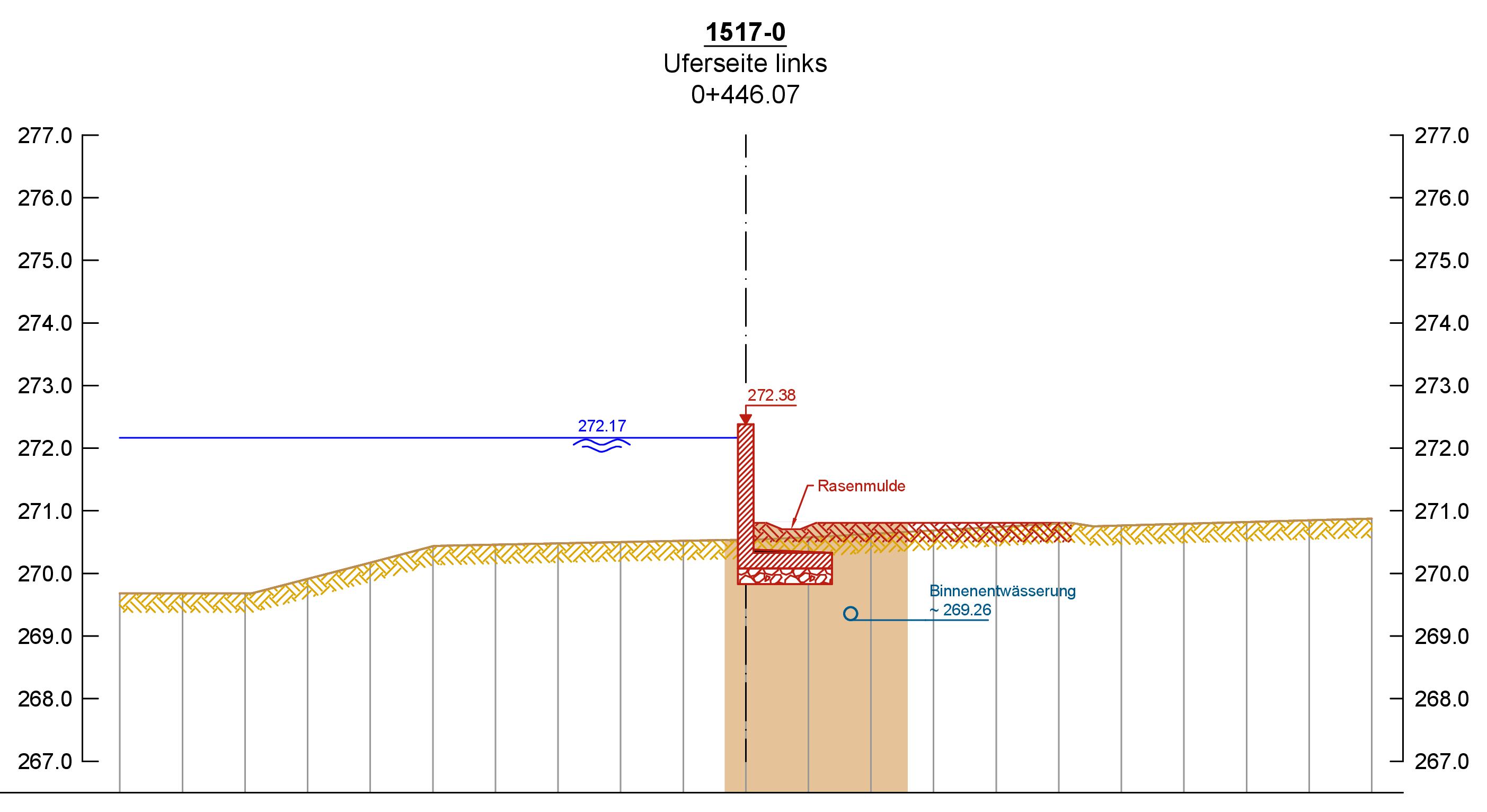 - Bemessungsabfluss HQ100 +Klimazuschlag 15%: 100 m³/s