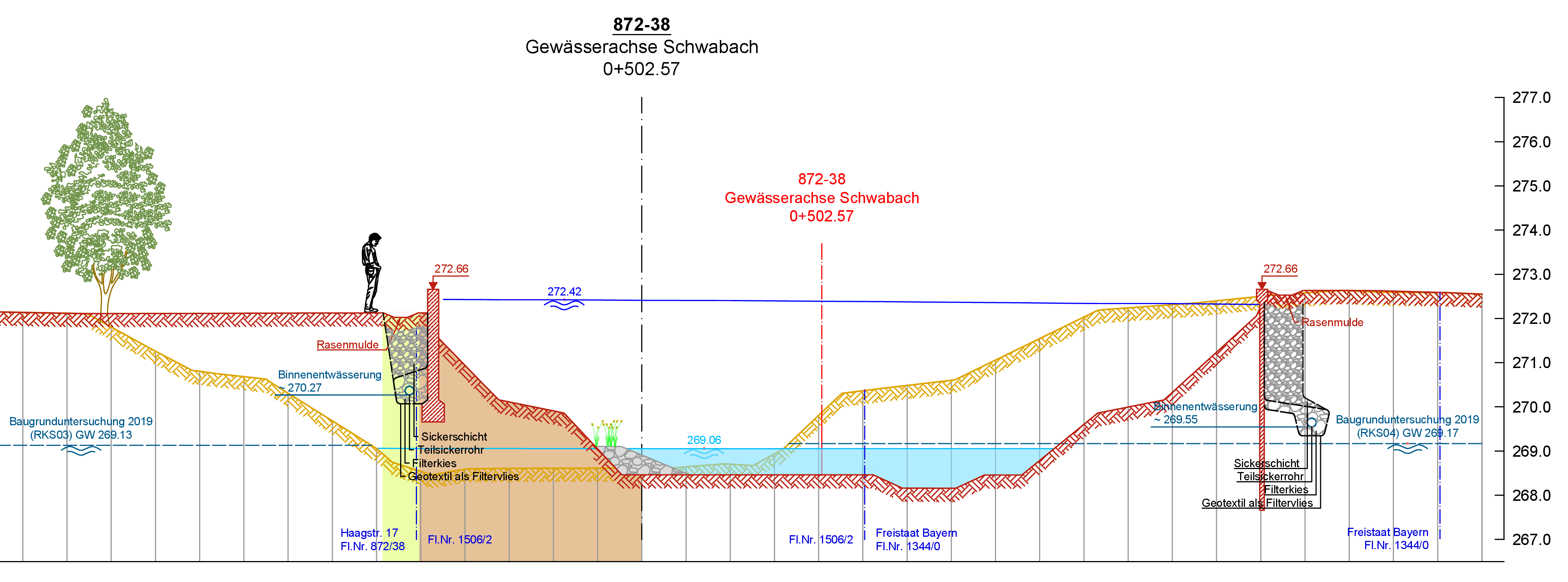 Im Vorfeld wurden bereits 5 Grundwassermessstellen hergestellt. Die Aufzeichnungen der Grundwassermessstellen sind einerseits wichtige Planungsgrundlage, andererseits dienen sie auch der Dokumentation der Grundwasserstände vor, während und nach der Baumaßnahme.