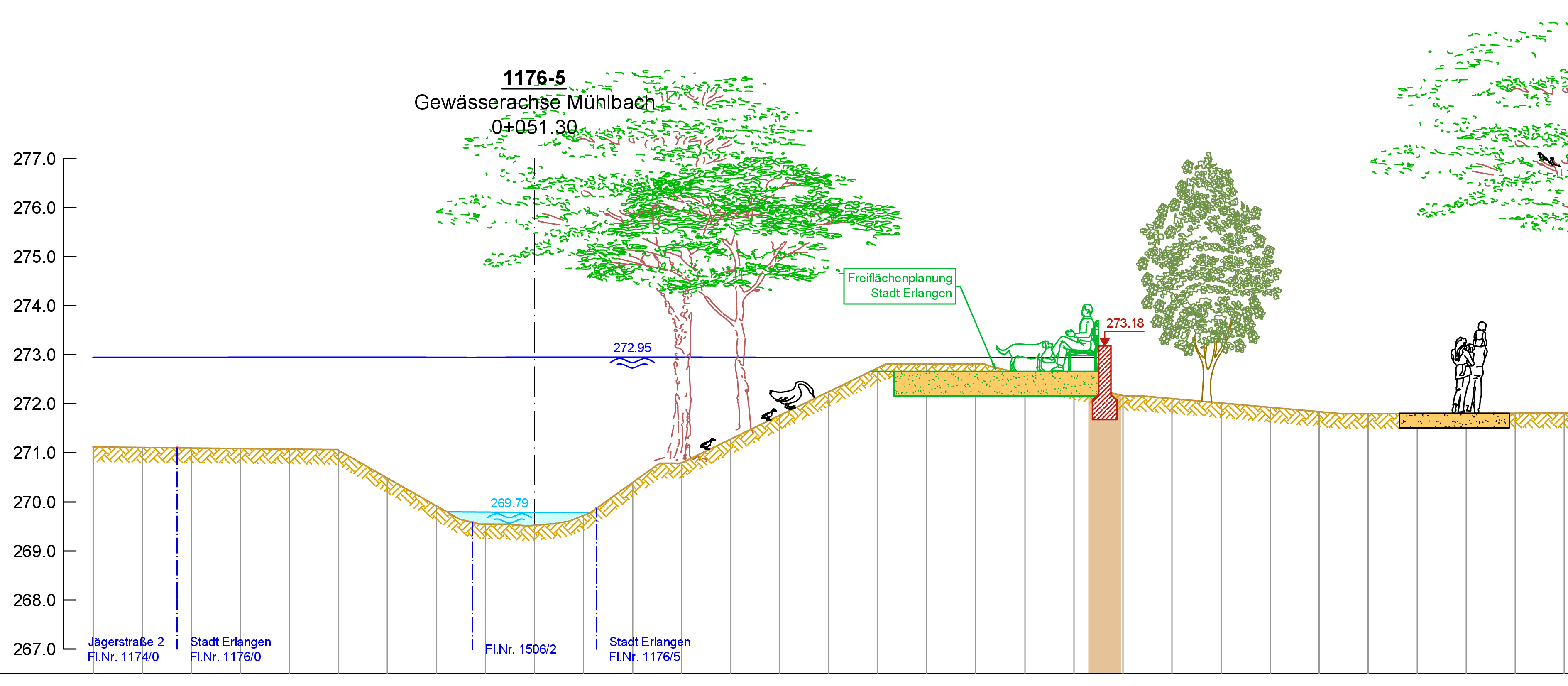 Die Planungen wurden in enger Abstimmung mit den Ämtern der Stadt Erlangen sowie den betroffenen Anliegern durchgeführt. Im Zuge mehrerer Planungsworkshops wurden die Belange der Bürgerinnen und Bürger aufgenommen und verstärkt in die Planungen zur Umsetzung der Hochwasserschutzmaßnahme integriert.